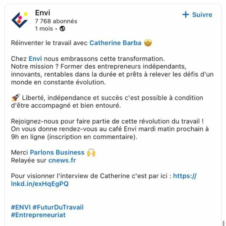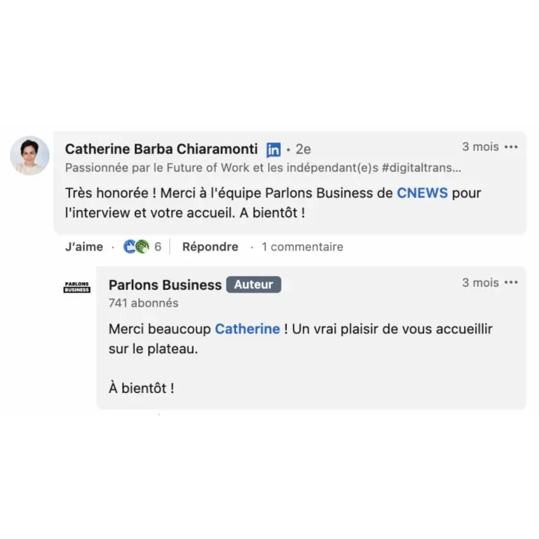 Avec une audience de plus de 8 millions de visiteurs uniques par mois sur CNews.fr,, vous augmentez immédiatement votre visibilité et touchez des clients potentiels à grande échelle. De nombreuses entreprises ayant participé ont vu une augmentation significative de leur notoriété, de nouveaux clients, et des opportunités de partenariats après leur passage dans l’émission.