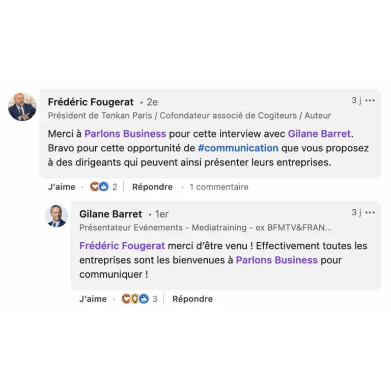Pour maximiser l'impact, nous vous recommandons de partager la vidéo sur vos propres canaux (réseaux sociaux, site web, newsletters). Utilisez cette opportunité pour communiquer autour de votre passage, renforcer votre image de marque et susciter l'engagement de vos clients et partenaires. Nous vous conseillons également d'ajouter des appels à l'action dans vos communications pour générer des prospects qualifiés ainsi que dans vos dossiers d'appels d'offres, vos dossiers de présentations et deck présentation.